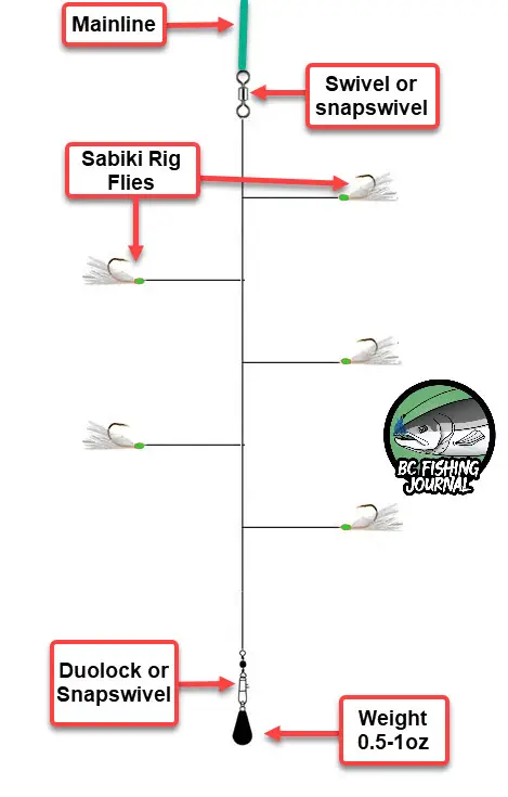 The Sabiki rig is typically vertically jigged out of a boat or water craft of some sort. You can also cast the setup from shore and jig it back toward you. The Sabiki rig is almost weightless as its only a few feet of and flies, so in order to cast it or even get it deeper in the water column you have to add a weight. As it’s a light rig you don’t need much weight and really that weight is dependent on the water depth your fishing and if there is any tide you’re dealing with. Typically I put 1/2oz to 1oz on the bottom of the setup to fish it properly. But again if you’re fishing in the ocean and there is a ripping tide you may want to need to put a heavier weight like 2oz to even 6oz to get the rig to the bottom.