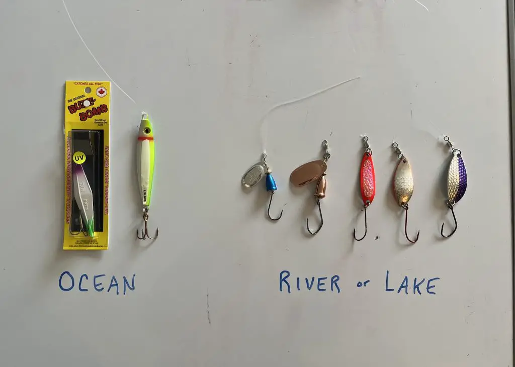 This rod and reel combo I bought specifically for tossing spoons and spinners in the rivers. In my local rivers I’m targeting large salmon, Steelhead and various other species of Trout. That said, this combo is also perfect for tidal beach casting heavier lures like Buzz Bombs or weighted jigs. The rod whip can launch these heavier lures (2-6oz) way out there! But again my primary usage for this rod will be non-tidal rivers and some lakes.
