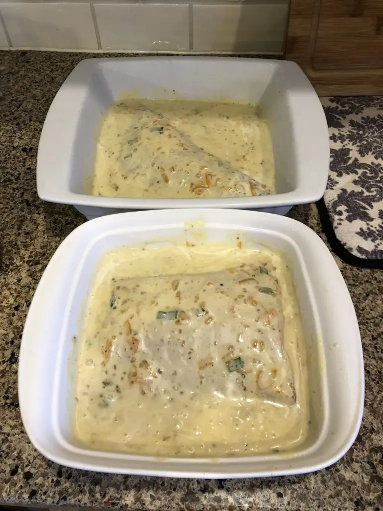 - Cover the halibut with sauce. The fish shouldn’t be 100% drowned in the sauce, but it doesn’t hurt to have too much sauce in my experience!