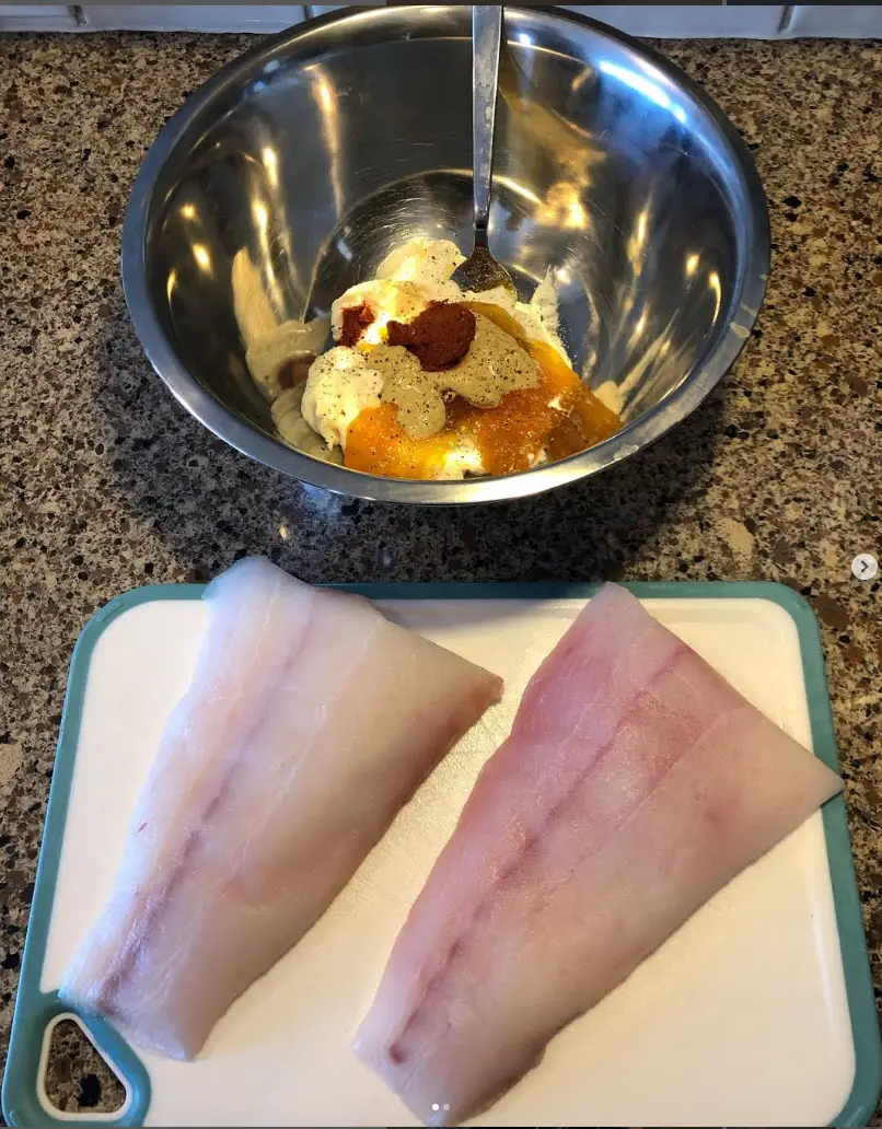 - Combine and mix well all the ingredients (excluding the Halibut & Chopped Green Onions)