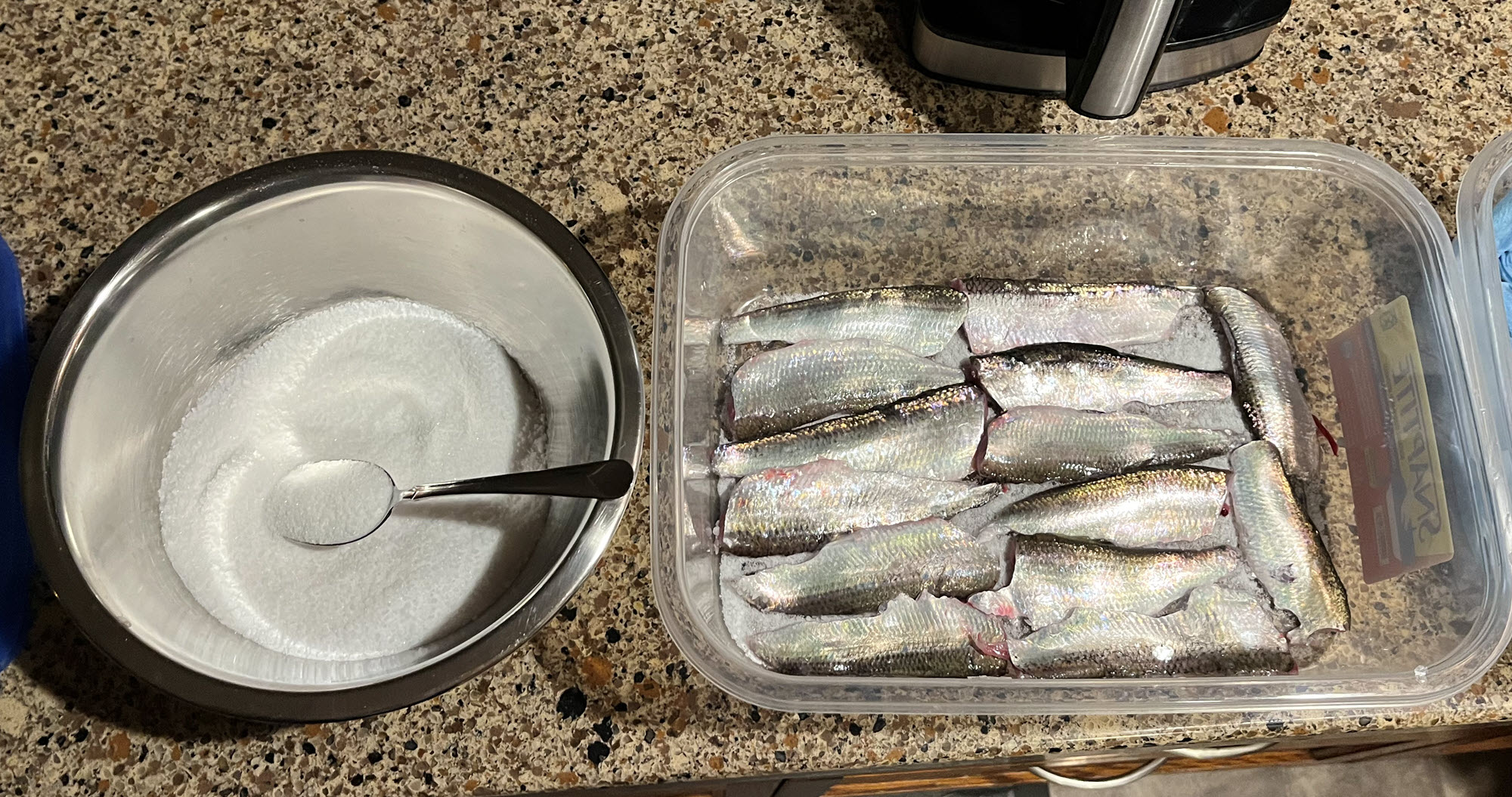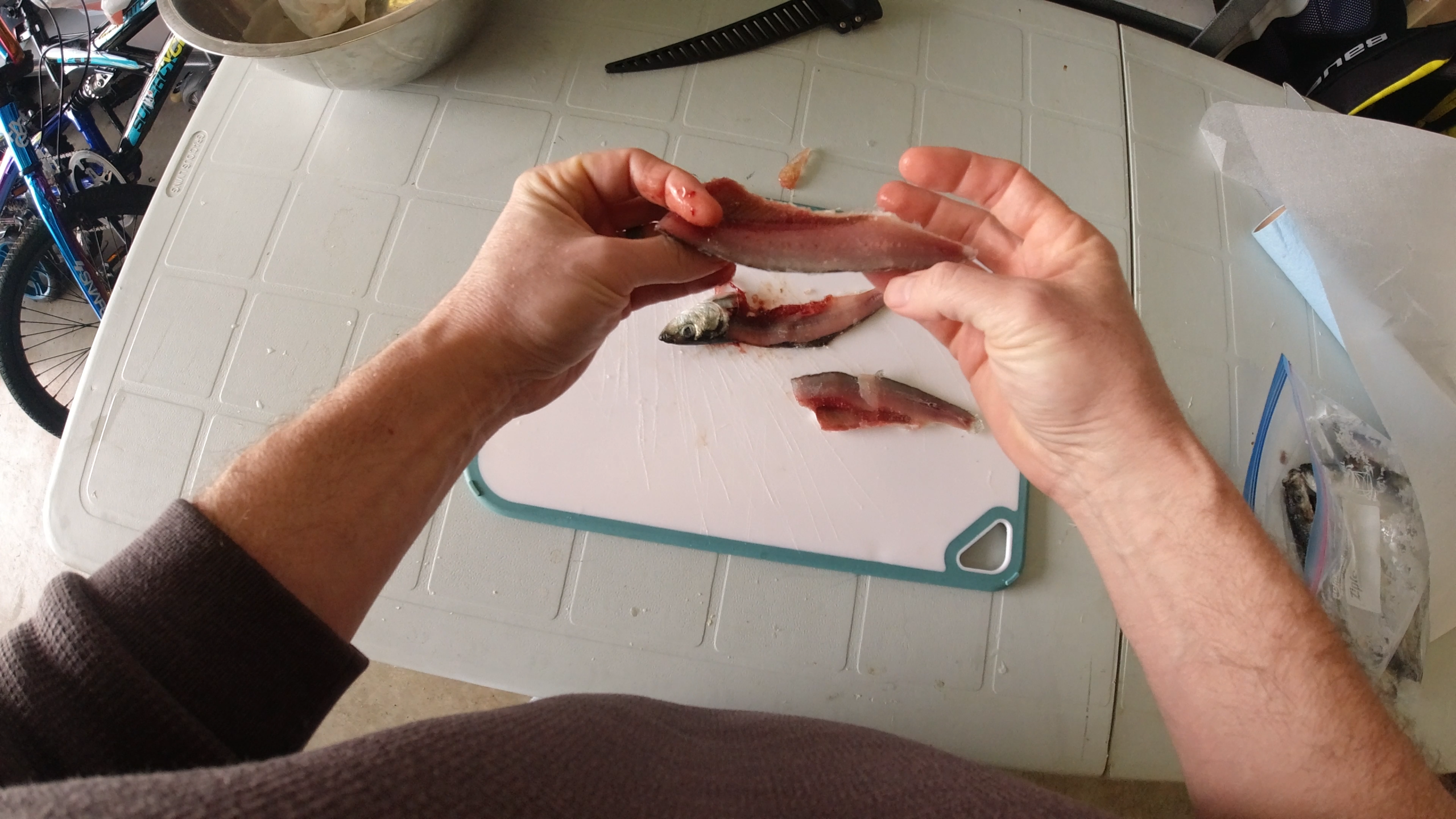 Pro Tip: Filleting Herring are difficult to fillet and can be messy. If you freeze the Herring for a few hours they’re much easier and cleaner to fillet.