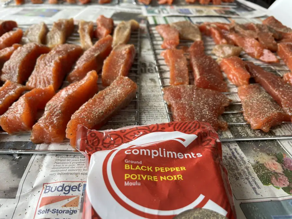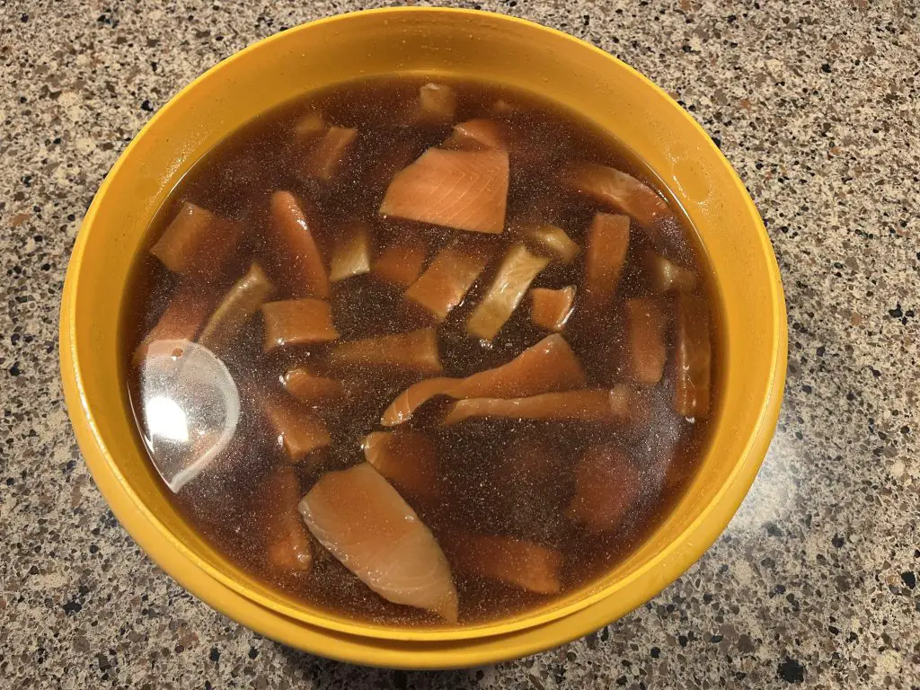 This next photo is the salmon that’s been sitting in the brine for a few days.