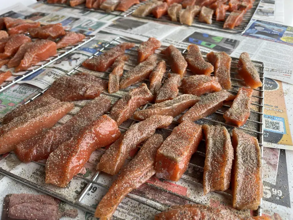 IMPORTANT: As mentioned, for this recipe I processed 3 adult Chinook (King) salmon of which the cut pieces completely covered 4 racks of my smoker. If you’re only processing 1 or 2 fish you may want to half the above recipe amounts.