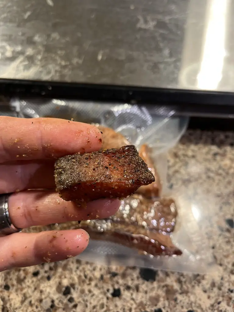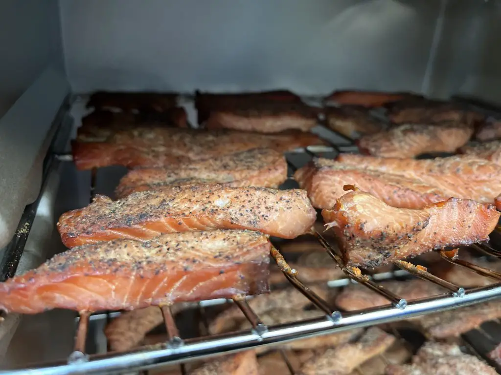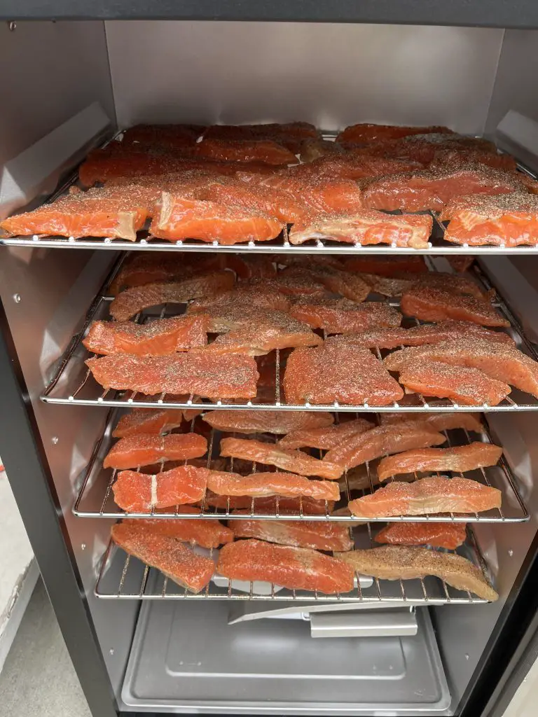 Once I pull the meat off racks, I eat as much as my stomach can handle. It’s at this point the salmon will never taste better, fresh off the smoker! For the remainder of the salmon, I section it off into Ziploc bags and put them in the fridge. If there is smoked salmon that won’t get eaten in the next few weeks in the fridge, I’ll vacuum seal it and put into the freezer. You can freeze smoked salmon and thaw out in fridge and enjoy many months later.
